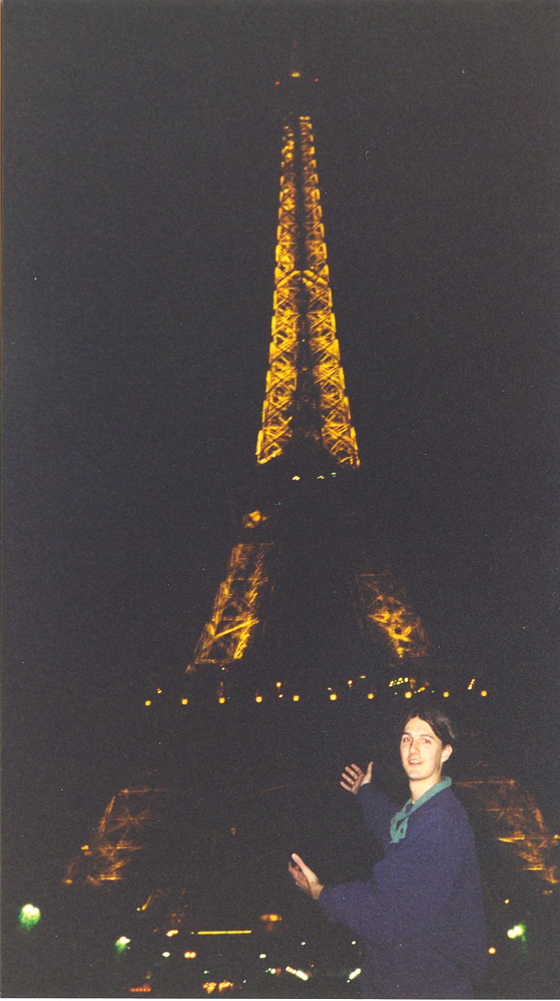 At 6 p.m. Doug and I walked to the hotel where we hung out until we agreed to meet Rachel and Andrew later at the Latin Quarter near the famous Collège de Sorbonne, which dates back to 1257. Doug and I walked to the Hard Rock Café, one of the most famous Hard Rocks in the world. It’s tourist and overpriced, but I enjoyed my BBQ bacon cheeseburger, baked beans and fries. Doug and I then walked to the Latin Quarter to meet the others at 10. We were unfortunately 30 minutes late and they had already left us. Therefore, we decided to go see the Eiffel Tower.