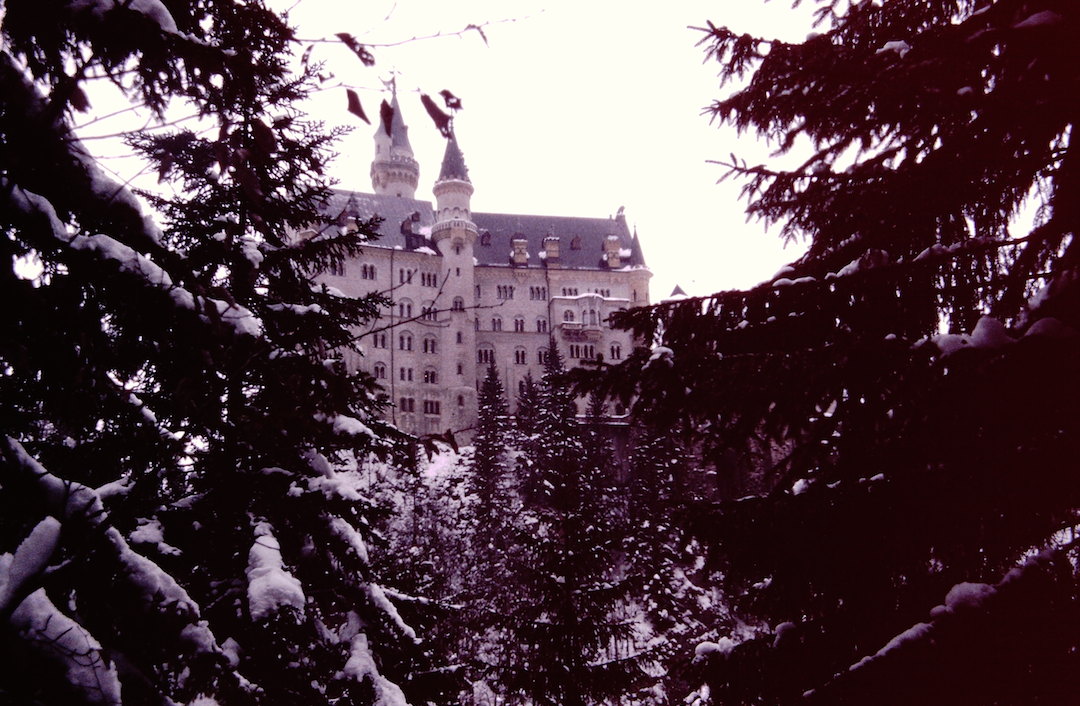After leaving, we headed down the snowy roads towards King Ludwig II’s fairytale castle, Neuchwanstein. Barry and I walked 2 miles (the long way) really by accident to the castle amidst awe-inspiring winter landscapes with waterfalls, gorges, the Alps, alpine bridges and the castle itself. Set on a prominent rock spire, the fairytale-like castle of the “mad” King Ludwig II was a huge architectural achievement. The castle was very impressive all sorts of styles included like Greek revival, medieval, renaissance and baroque. It was tacky though very beautiful and only over 100 years old, built by Bavaria’s last king. I could just picture and imagine hearing Ludwig’s friend Richard Wagner playing his concerts in the fortress (like “Flight of the Valkyries”).