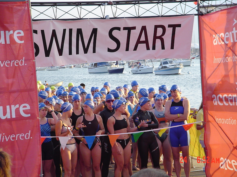 This year the Accenture Chicago Triathlon was the largest triathlon in the world, with more than 5,000 participants in the Olympic (International) distance. The swim was in Lake Michigan and I was a little worried because I didn’t have a wetsuit. The water temperature was expected to be 66 degrees, much colder than the 80 to 82 degree pools I am accustomed to swimming in.