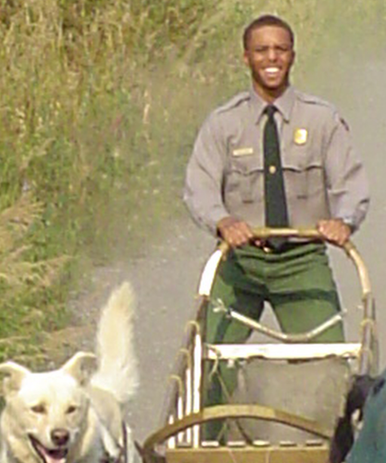 As we drove south on Highway 3 toward Denali National Park. That afternoon we stopped near part of the park to go dog sledding. Because there was not snow on the ground in August, the sleds were on rollers. One of the park rangers was a student from Tuskegee Institute in Alabama, of all places. He ran a demonstration of the dogs in work. They later showed us how to take care of the beautiful huskies. They had such fierce eyes, powerful bodies and strong paws.