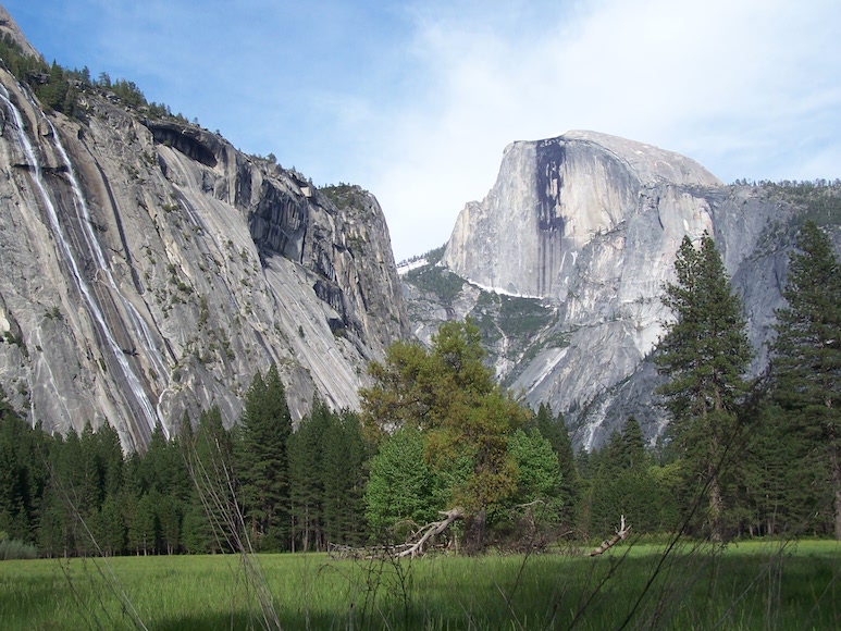 Then we walked to Yosemite Falls, two of the most beautiful falls in the world. The May runoff was epic and I had never seen so much water before. The misted drifted on you half a mile away and the roar was tremendous. We walked up to the trailhead to Lower Yosemite Fall. The water even got us soaked if we decided to stand on the bridge over the river at the bottom!