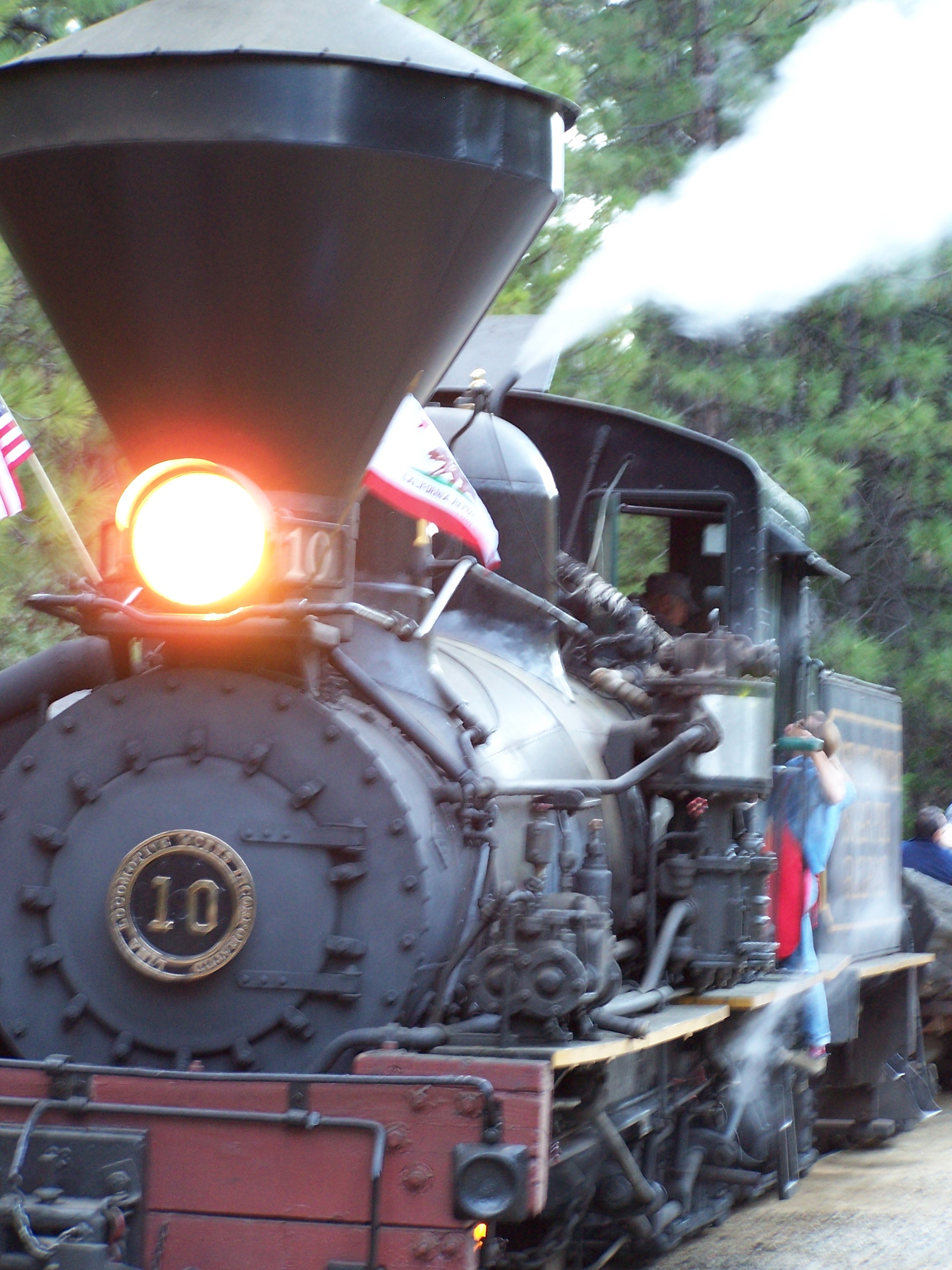 This morning we packed up and said goodbye to the Tenaya Lodge. As we left the Yosemite area, we stopped to visit the Yosemite Mountain Sugar Pine Railroad. The narrow gauge railroad was a former logging train, but today is one-hour narrated passenger journey through the Sierra National Forest. We took the steam train at 11 a.m. on a four-mile journey, enjoying a brief stop in Lewis Creek Canyon to see the canyon before returning.