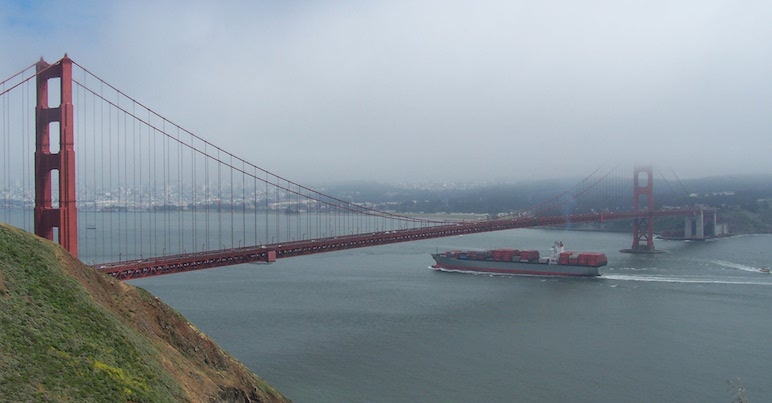 After reaching the north side, we turn left on Alexander Highway under 101, and cycled up steep Conzelman Rd to the Battery Spencer lookout. I waited on Dad and we enjoyed the views of a few cargo giant ships from Japan and China sailing underneath the Golden Gate in the fog. Dad had already decided this would be his turnaround point, so I continued upwards on the climb up Conzelman Road into the fog.