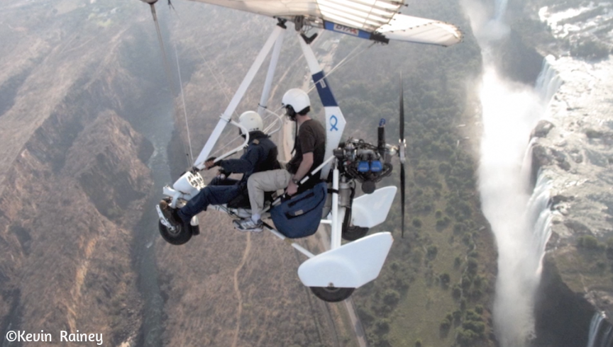 We banked gently over the falls while my German pilot, Heiko, explained a few features as we made a couple of loops over the Zambian and Zimbabwean sides. After leaving, Heiko let me steer the glider, which was surprisingly harder to steer than I imagined. After flying over a herd of elephants and hippos, we proceeded toward a soft landing.