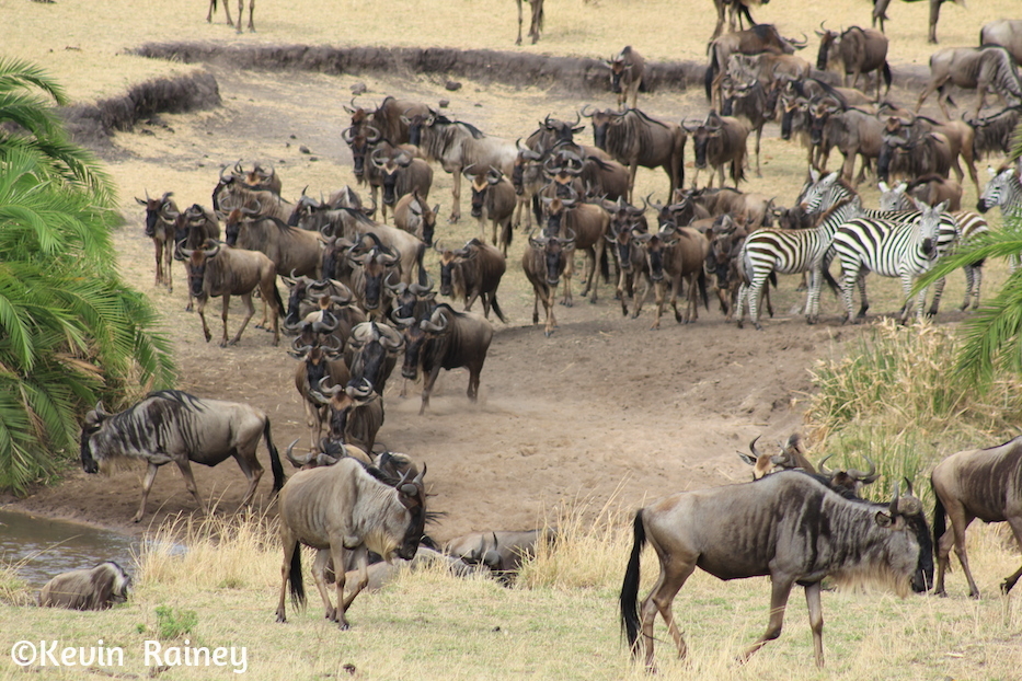 We learned by radio earlier that the Migration was passing into Kenya, so we were really lucky to catch the tail end of it. We saw several thousands of wildebeasts, impalas and zebras crossing a stream. We also gazed at lions, gazelles, elephants and giraffes. Literally, it looked like we were watching Animal Planet or the Discovery Channel in living color before our very eyes! It was absolutely stunning how large the herd was.