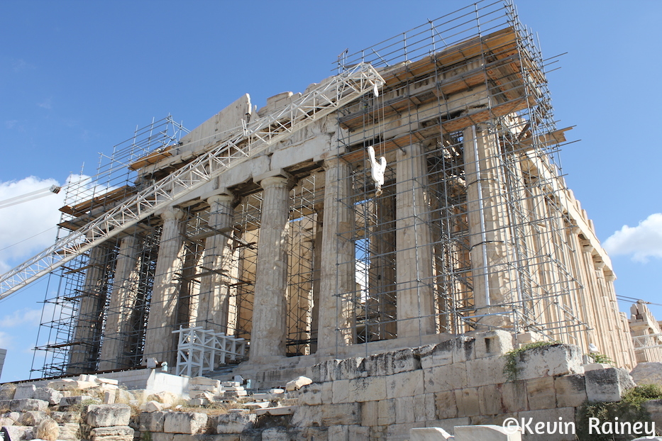 One thing I didn’t know was the story of why the Parthenon is so badly damaged today. During September 1687, the Venetians laid siege to Athens, which was then under Ottoman control. The Ottoman Turks used the Parthenon as an ammunition depot. On September 26, a Venetian shell landed in the Parthenon and the structure shook with a tremendous explosion. Much of the damage you see today was caused by that shell igniting the gunpowder. I had seen some of the surviving marble “Elgin” sculptures – named after the Earl of Elgin – previously at the British Museum in London. I could somewhat imagine how beautiful this temple must have been back in Ancient Greece because I have seen the full-scale replica in Nashville’s Centennial Park with its statue of Athena.