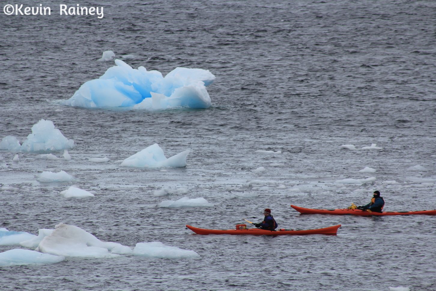Around 8 a.m., we set off with Jimmy and Ian guiding us into Fournier Bay. We kayaked not far from several enormous icebergs, but careful not to get to close. They shift upside down often, and many times they are larger on bottom. They can cause serious injury or capsize you if you’re careless.