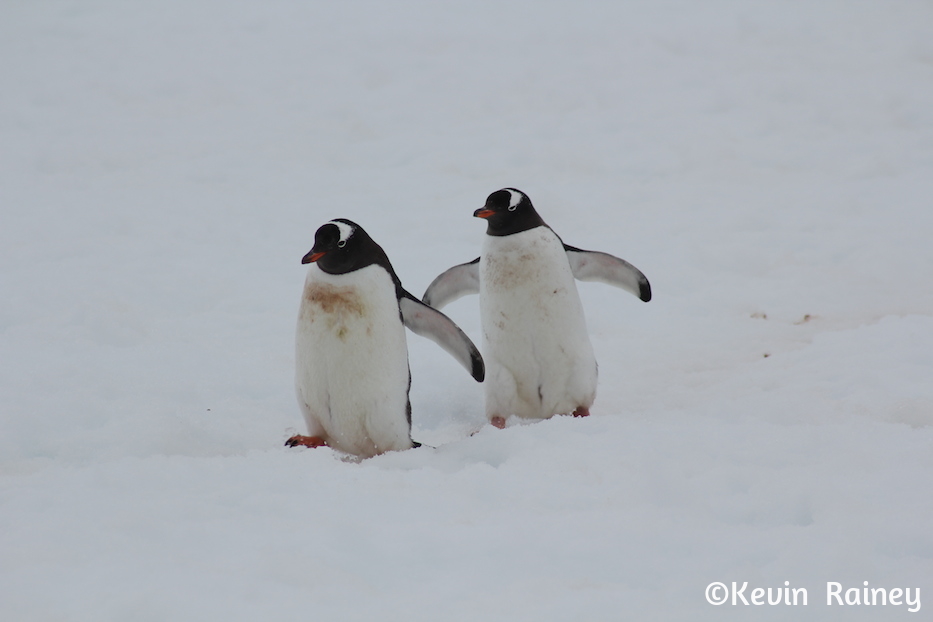 There is nothing quite as interesting as watching penguins stumble around in the wild for the first time. They shuffle their feet awkwardly as they scoot along smooth snow. However, they have trouble crossing large indentations in the snow, especially those caused by human footprints. When they tried to cross our footprints, they would tip over and fall on their tummies. They would then use their front flippers to wallow forward before regaining their back feet. And I thought I was klutzy … not the most graceful birds!