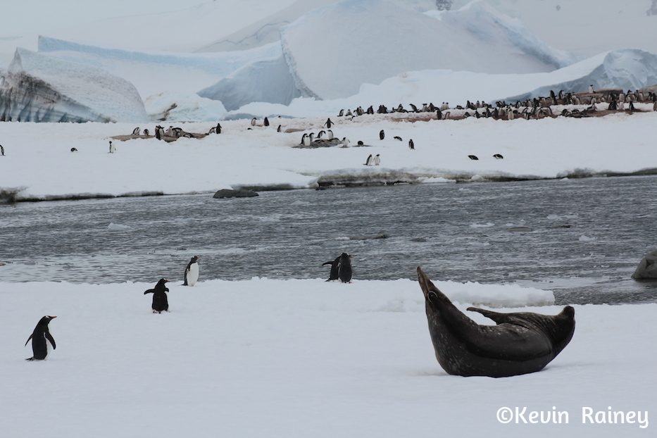 Nearby the gentoo penguin colony, we saw a Weddell seal lounging around. These seals will occasionally eat penguins, but they mainly dine on fish, bottom-feeding prawns, crustaceans, krill and squid. They have great eyesight in the light, but when it’s dark in the winter, they use their special whiskers with more than 500 nerve endings to detect the wake of fish to capture them. These are interesting seals because they are one of the very few Antarctic seals that prefer living near shore-fast ice as opposed to free-floating pack ice. Weddell seals have the most southerly distribution of any mammal and venture all the way to McMurdo Sound! Here on shore-fast ice, they have no natural predators.