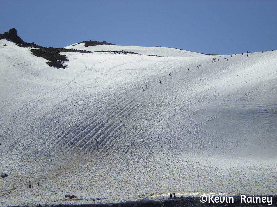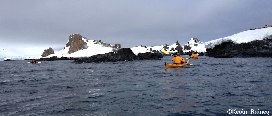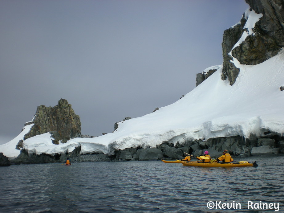 We launched from the beach at Robert Point and the weather was beautiful as the sun came out. We paddled by several elephant seals that were patrolling and dining on a beach. Then we passed a penguin highway, a crossing of penguins from a snow-covered hill where they marched to the water below where they fed.
