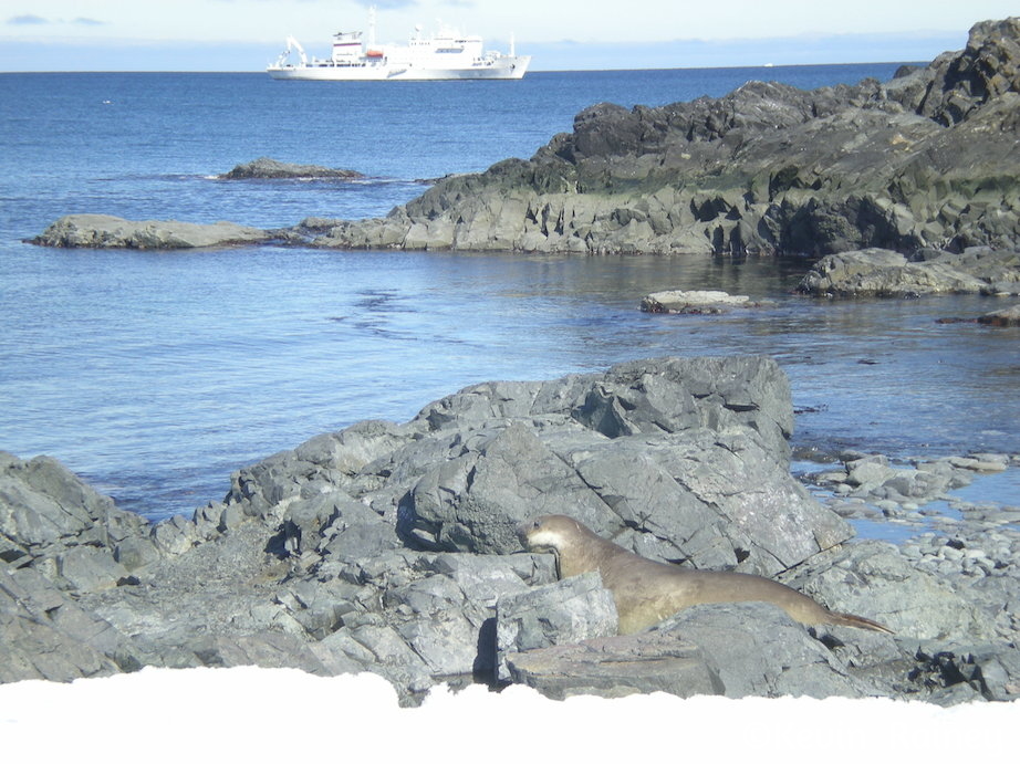 After dinner on the Akademik Sergei Vavilov this evening, we enjoyed some of our last views of the South Shetland Islands in the distance from the deck and lounge. Katie – our Scottish historian – gave a fireside chat presentation on her experience living on South Georgia Island. South Georgia is a British overseas territory in the southern Atlantic Ocean. I enjoyed hearing Katie’s experiences because we both enjoy history. Katie actually tended Sir Ernest Shackleton’s grave in Grytviken while working at a museum there. It was one of her surprise “duties as assigned.”