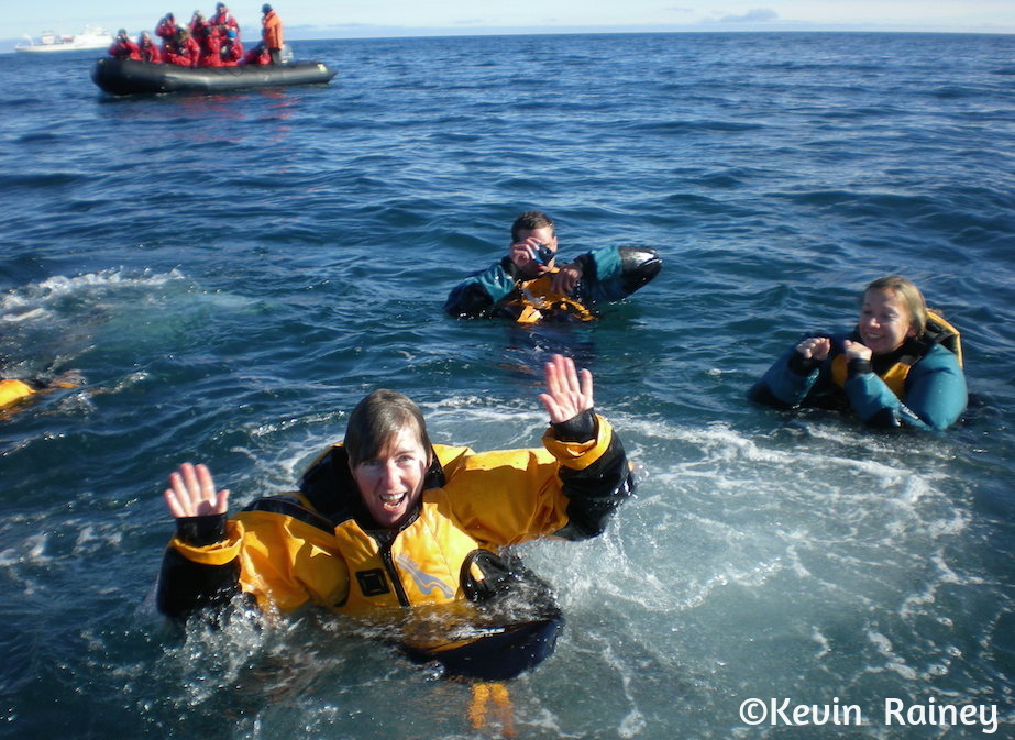 To celebrate the end of our kayaking, just about everyone jumped out of the zodiak in their dry suits for a swim to celebrate the end of our paddling adventures. We were sad to say goodbye to Antarctica.