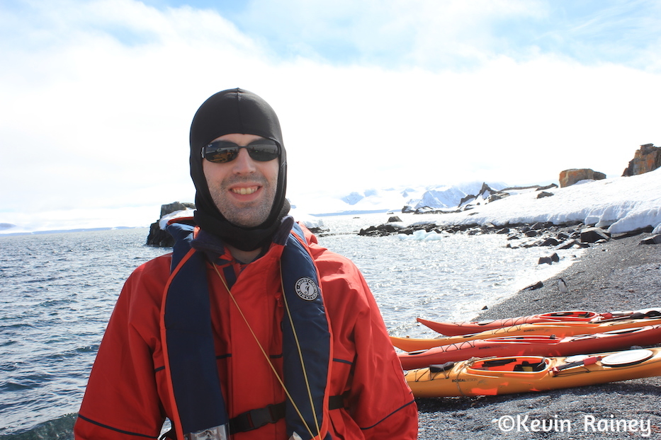 After breakfast, we woke up outside Half Moon Island. I decided to go kayaking, but my brother was a little tired and decided not to paddle this morning. Due to stronflg currents in the bay, we launched our kayaks from the island. The weather this morning was outstanding – our bluest skies of the trip. We enjoyed the warmer weather and our kayak guides Jimmy and Ian were keen to kayak around the entire island.