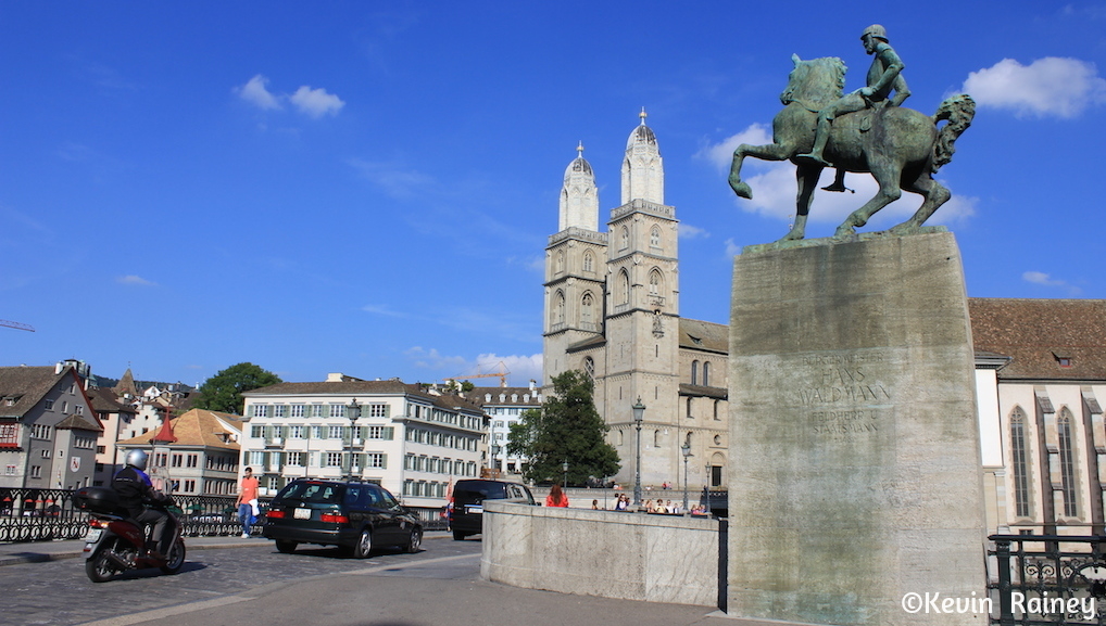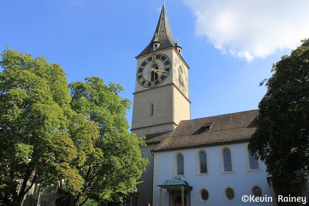 In my opinion, the Grossmünster – located across the River Limmat from the Fraumünster – is the most beautiful church in Zürich. According to legend, Charlemagne discovered the graves of the city’s patron saints Felix and Regula, so he declared that a church be built as a monastery on the spot. It was at the Grossmünster in early 1500s where Huldrych Zwingli and Heinrich Bullinger started the Swiss-German Reformation. I toured inside and admired the ornate bronze doors before gazing in awe at the beautiful stained-glass windows. The Romanesque crypt is also interesting, but the highlight for me was learning more about the Swiss Reformation while touring the Reformation Museum located in the cloisters.