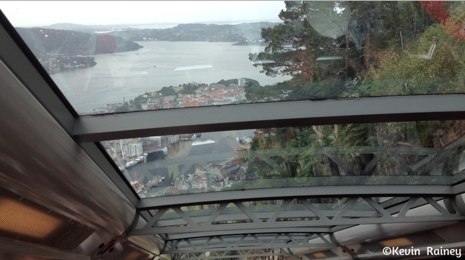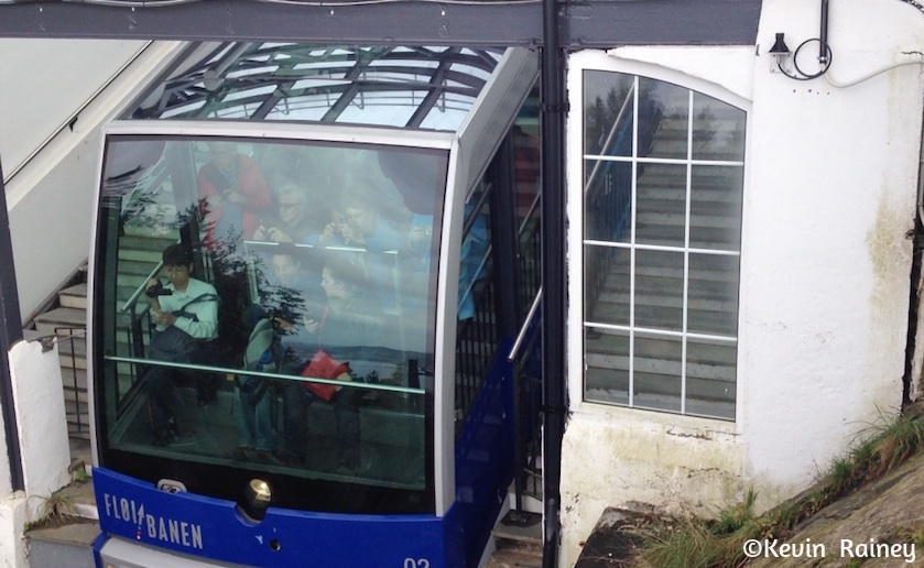 Once we finished our tour of the Fantoft Stavkirke, we took the bus back to central Bergen. Then we decided to visit Mt. Fløyen. Located in the old town center, we entered a funicular station and bought tickets on the Fløibanen. This funicular train transported us up to the summit of Mt. Fløyen, the most visited of Bergen’s Seven Mountains. On top we saw mountaintop trails and admired the stunning panoramic views of the city, Hardangerfjord and the beautiful waters of the North Sea port below.