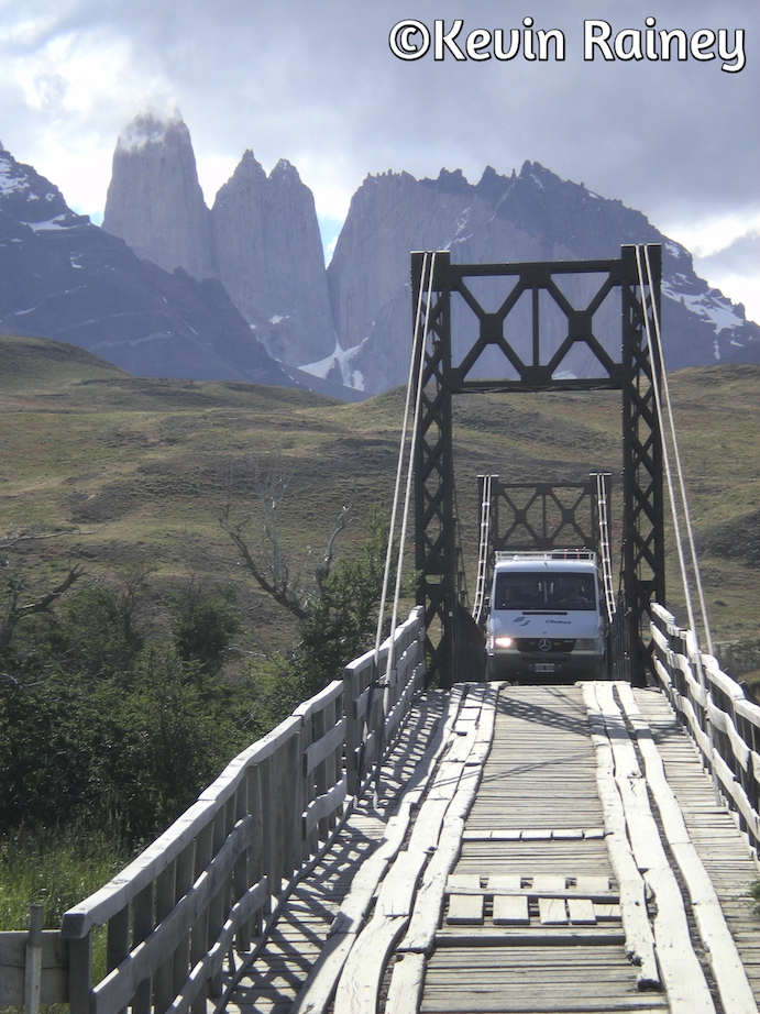 I had just finished hiking the world-famous Circuito W in Chile’s Parque Nacional Torres del Paine. On my walk to the bus stop at Laguna Amarga, I happened to turn around when I heard a vehicle in the distance. I captured this photo of a microbus crossing a ridiculously narrow bridge with the famous Torres piercing the clouds behind it. It just fit like a glove and the bridge shook with each lunge forward of the bus.