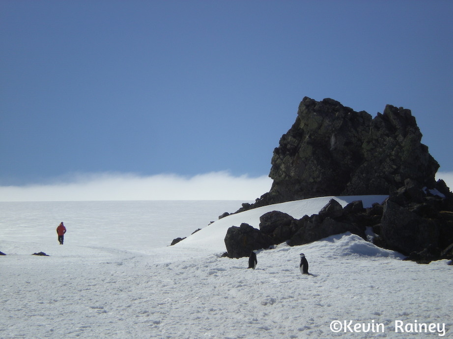 I silently viewed some chinstrap penguins socializing on Robert Island, part of Antarctica’s South Shetland Island chain. Not far from Robert Point, one of my fellow travelers started walking up a path seemingly into the clouds. The penguins themselves turned to watch him and seemed to acknowledge the curious visitors to their stunning island on a sunny day in the Antarctic.