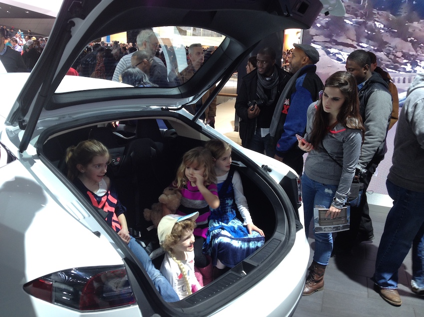 I visited the Detroit International Show on the final day, a Sunday, and I was surprised by how big it was. I had lunch in Greektown and gambled a little bit at the Greektown Casino where parking is much cheaper. I then took the People Mover — Detroit’s monorail — to the COBO Center, the city’s very modern and massive venue for special events. As I took the escalators down to the concourses, I soon encountered large crowds of all ages. This was great news for Detroit’s economy, though a staff worker told me the day before was the busiest of the entire show.