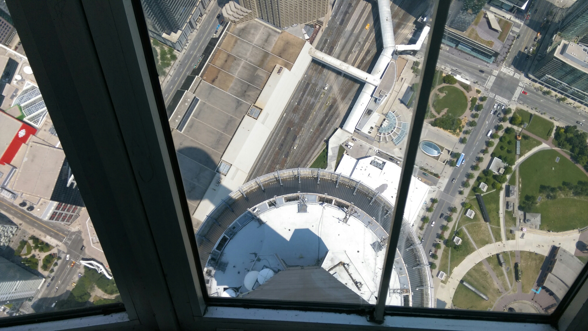 I strongly encourage you to pay the extra money to go above the Lookout Level to the SkyPod, which is more than 300 feet taller than the Lookout. You take a separate elevator on the Lookout Level to travel up to 1,465 feet above the city. On a clear day, you can see up to 100 miles away to Niagara Falls and New York State.